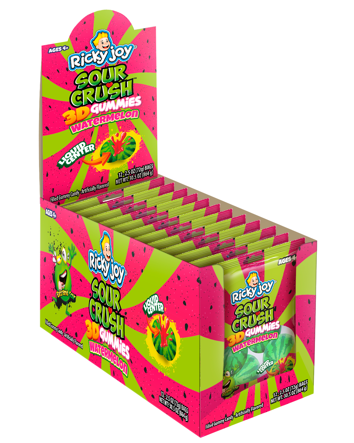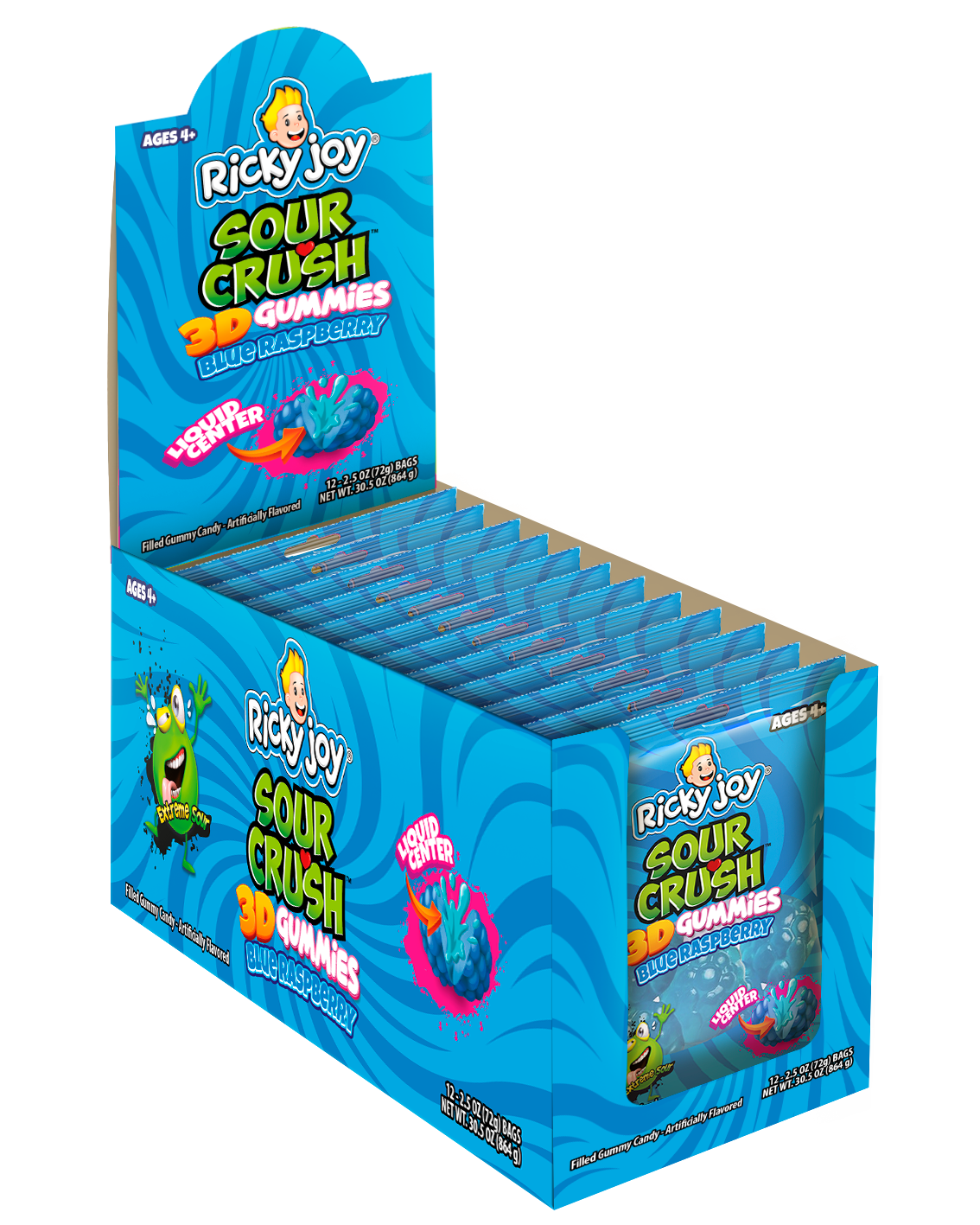 3D GUMMIES FRUIT BLAST SERIES INGREDIENTS: GLUCOSE SYRUP, SUGAR, DEXTROSE, GELATIN, CONCENTRATED APPLE JUICE, CITRIC ACID, MALIC ACID, SODIUM CITRATE, VEGETABLE OIL (COCONUT), CARNAUBA WAX, ARTIFICIAL FLAVORS, ARTIFICIAL COLOR (RED 40, YELLOW 5, BLUE 1).