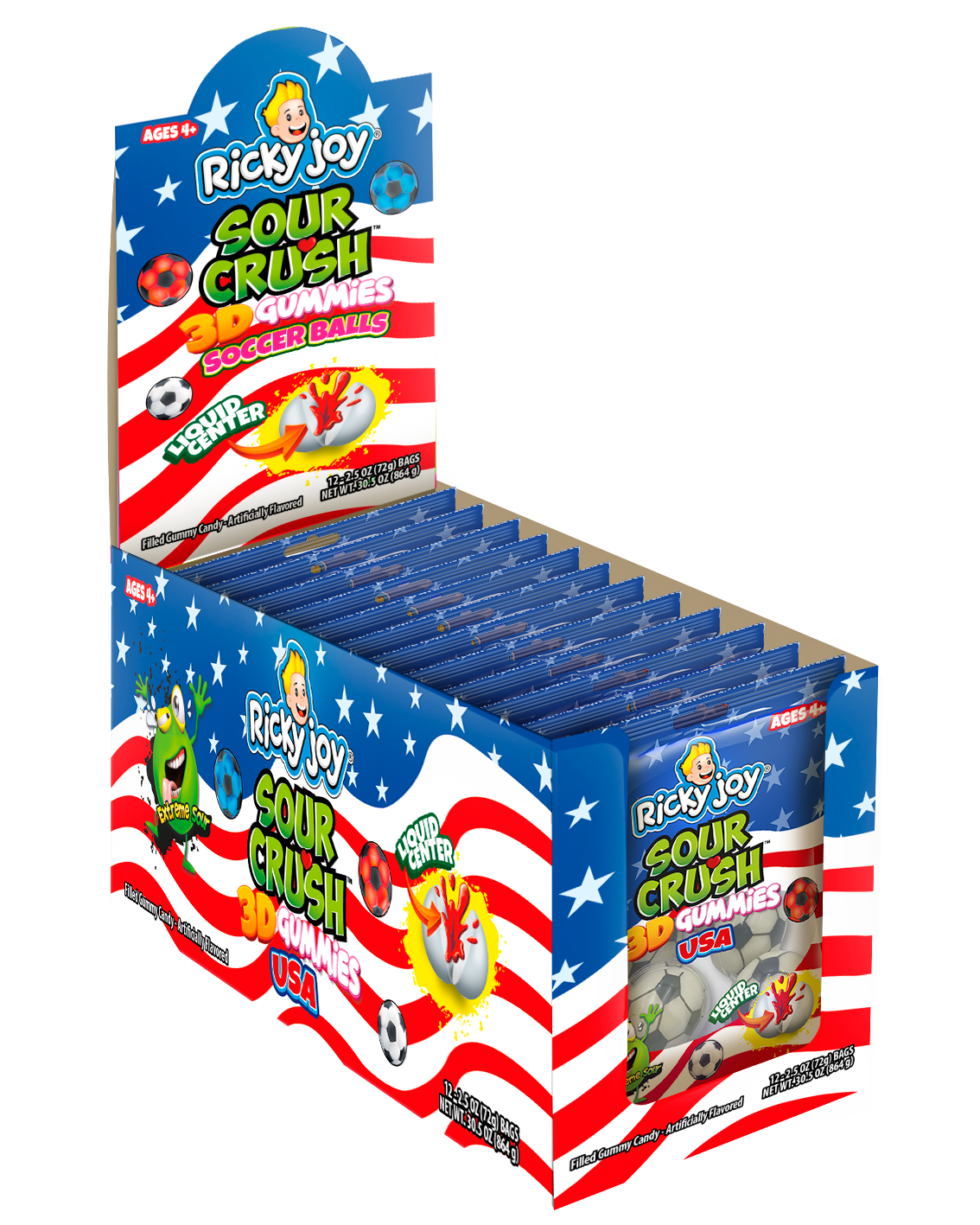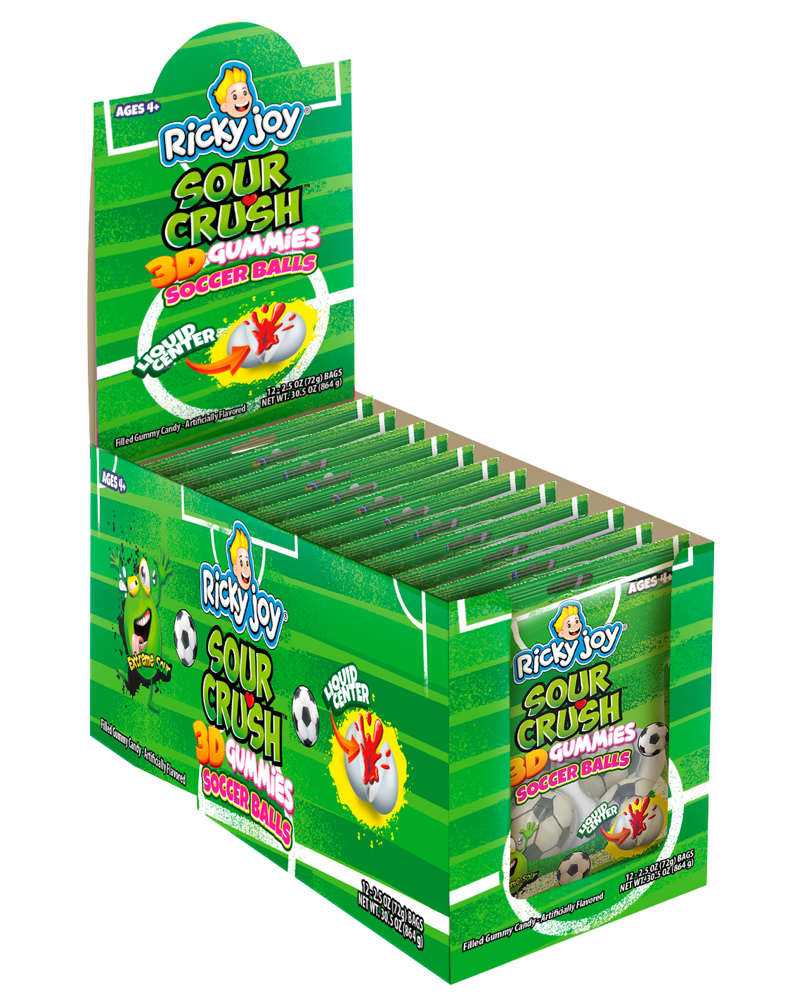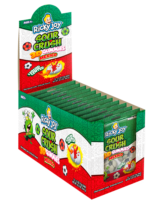 3D GUMMIES SOCCER BALLS INGREDIENTS: GLUCOSE SYRUP, SUGAR, DEXTROSE, GELATIN, CONCENTRATED APPLE JUICE, CITRIC ACID, MALIC ACID, SODIUM CITRATE, VEGETABLE OIL (COCONUT), CARNAUBA WAX, ARTIFICIAL FLAVORS, ARTIFICIAL COLOR (RED 40, YELLOW 5, BLUE 1).
